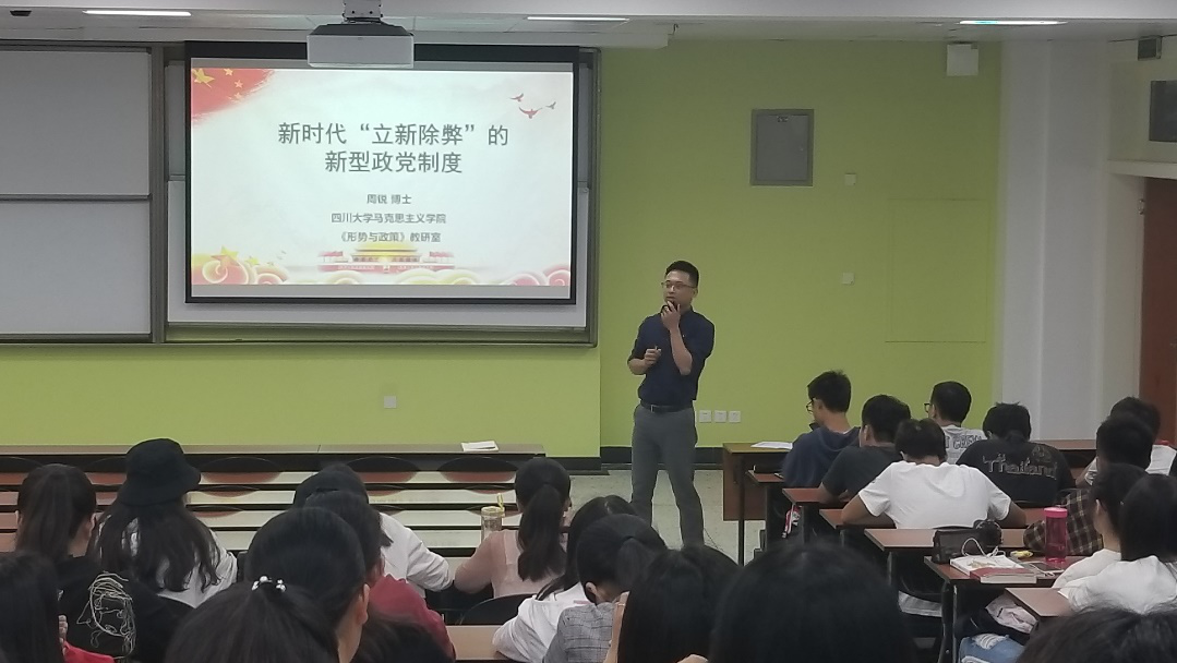 2018年10月12日下午,伟德国际1946习近平新时代中国特色社会主义思想研究会系列主题学习活动之五:“新时代‘立新除弊’新型政党制度”学习活动,在伟德国际1946江安校区第一教学楼B座307教室顺利举行。习研会指导老师与100余名同学参加本次活动。