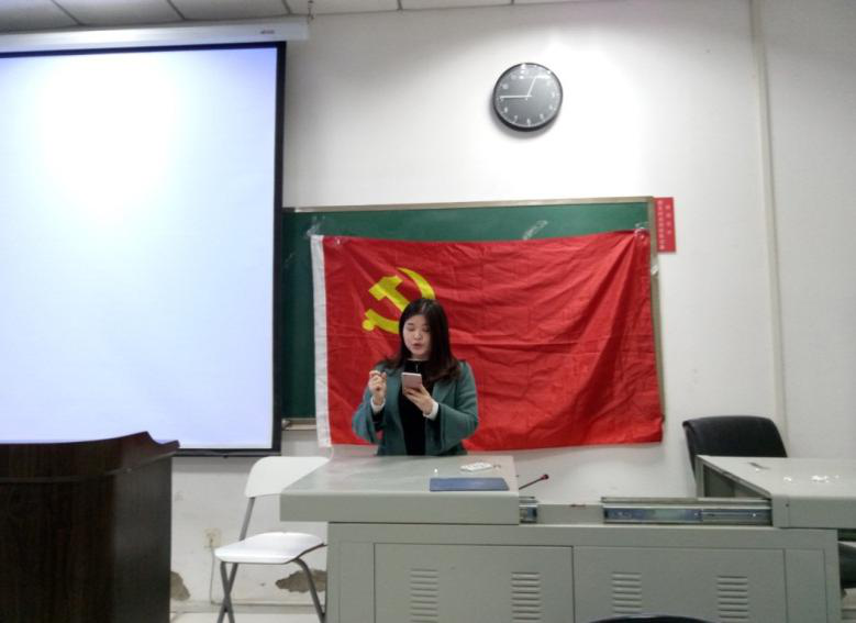 在交流分享环节,宗教学支部小组的武帅怡同学首先分享了习近平总书记在第十八届中央纪律检查委员会第六次全体会议上的一段讲话,“新松恨不高千尺,恶竹应须斩万竿”,出自杜甫。习总书记引用这句诗,以表达他的爱民之情,展示我党除恶务尽的决心。这句古诗向我们传达出的不仅是古诗之音韵,更是习近平总书记对人民的关切和自身的严格要求。