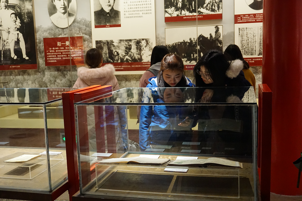 首先,同学们一同来到中流砥柱馆。中流砥柱馆外观方正大气,主体建筑由两部分组成,象征在中国共产党领导下的两支抗日武装力量:八路军和新四军。馆中主要展览以中国共产党及其领导的抗日军队在抗战中相关历史史实(包括文字介绍和实物展示),这些都昭示着中国共产党及其领导的抗日军队始终坚持抗日民族统一战线,是争取民族解放、国家独立的中流砥柱。一件件文物,都在娓娓述说着那段可歌可泣的历史,抗战的艰苦卓绝,不仅令党员同志们的崇敬之情油然而生,更是激发了同志们努力学习、以优异成绩和专业成就报效祖国的激情与梦想。
