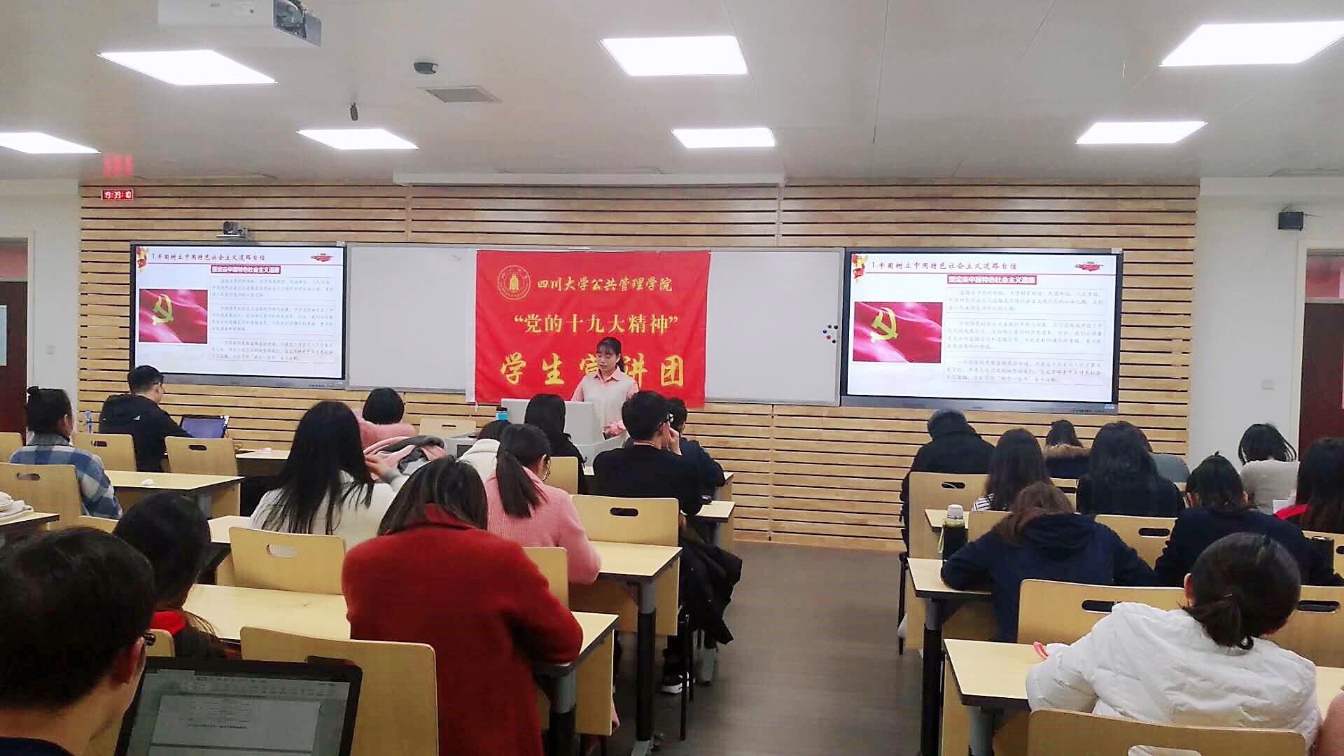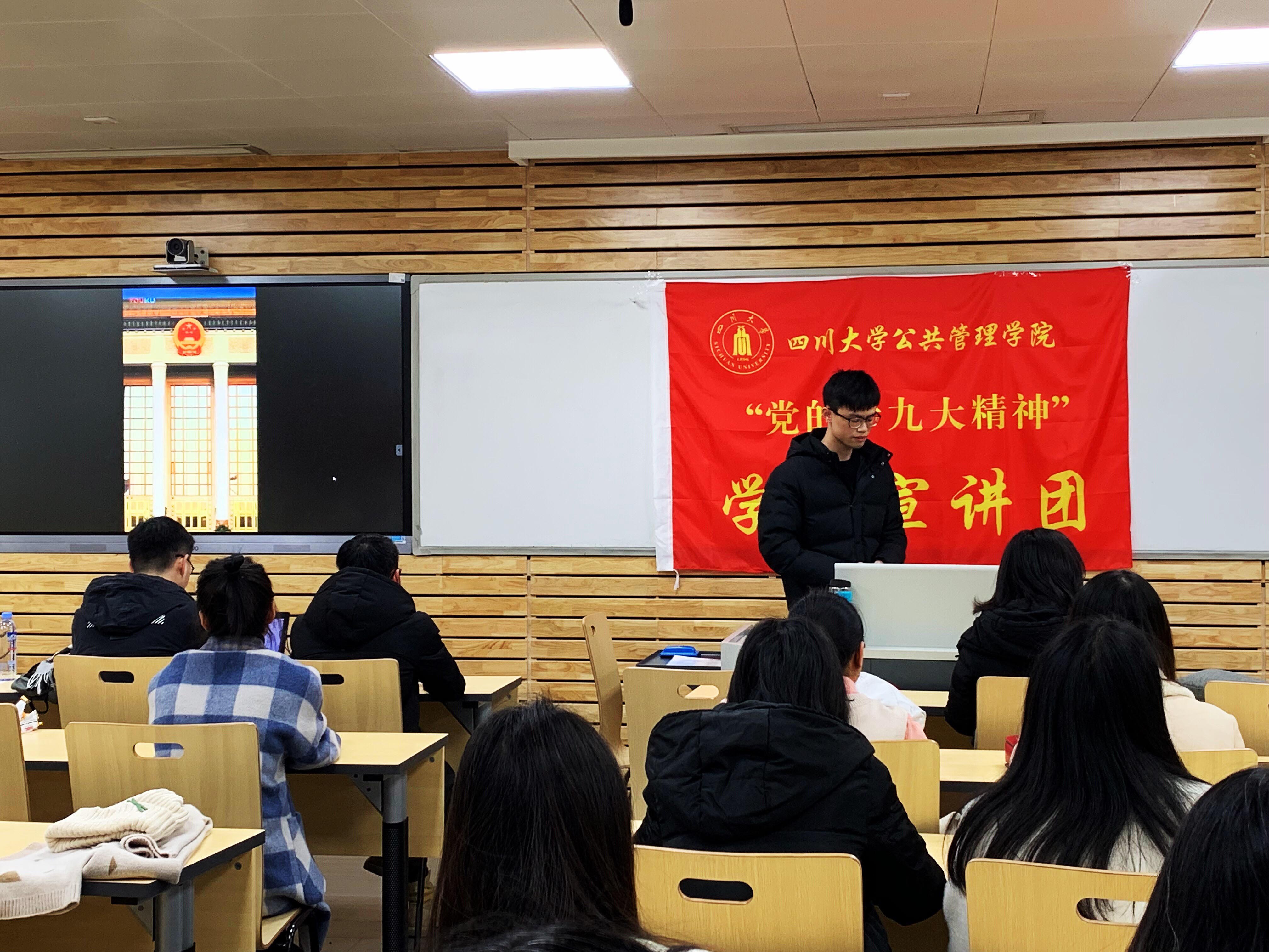 为持续推动学习宣传贯彻党的十九大精神热潮,鼓舞同学们深刻领会报告的丰富内涵,把思想和行动统一到党的十九大精神上来,12月12日,2017级研究生党支部、公司“党的十九大精神”员工宣讲团在望江校区基础教学楼A座408教室联合法公司举办了“弘扬爱国奋斗精神,做新时代青年楷模”的主题宣讲会。2017级研究生第二、第四支部全体党员、法公司部分研究生党员参加了此次活动。2017级研究生第四支部书记青杨媚老师出席活动并讲话。