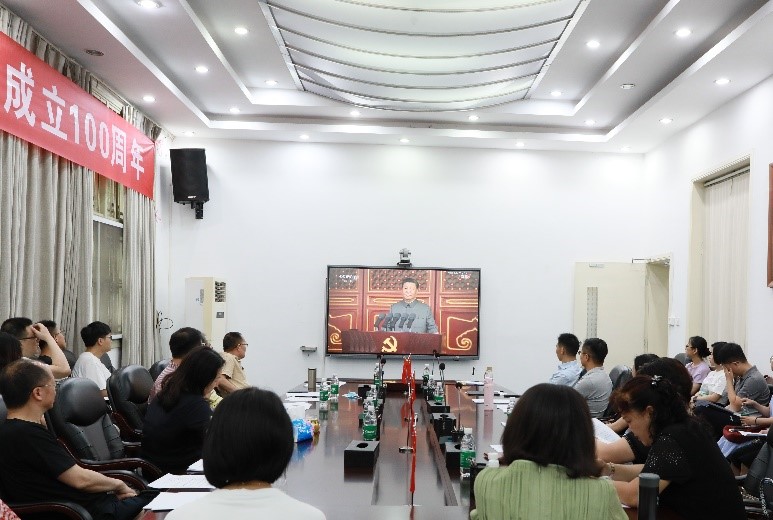 7月1日上午8时,伟德国际1946全体领导班子成员、两委委员、专职组织员、党支部书记、科级干部及部分师生代表在公司311会议室集体收看了庆祝中国共产党成立100周年庆祝大会。