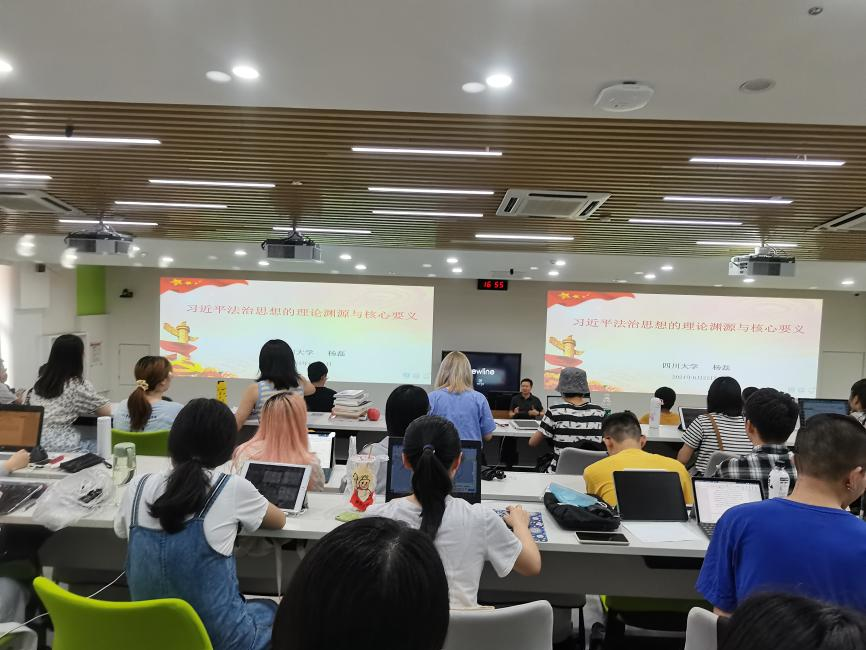 为庆祝中国共产党成立100周年,引导青年员工听党话、跟党走,深刻理解习近平新时代中国特色社会主义法治思想内涵,2021年6月25日,公司党委副书记杨磊以《习近平新时代中国特色社会主义法治思想的理论渊源与核心要义》为题,在伟德国际1946望江校区基教C104为2018级本科员工讲授了专题党课。