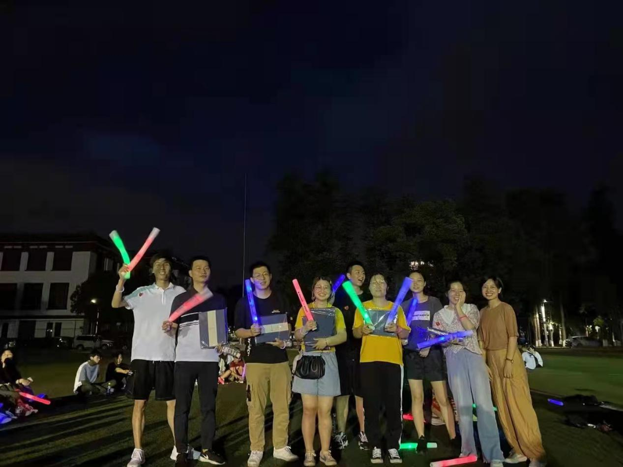 2020级研究生辅导员陈萱源向大家说明了本次活动的策划背景及三重用意:一为“活起来”,让党史学习教育以更加丰富多样的形式融入大家日常学习生活;二为“动起来”,提醒大家走出寝室走出教室走上运动场强健自身体魄;三为“合起来”,搭建平台增进了解让大家团结有爱共度校园时光。最后,在全体同学齐声高唱的《我和我的祖国》歌声中,活动圆满结束。