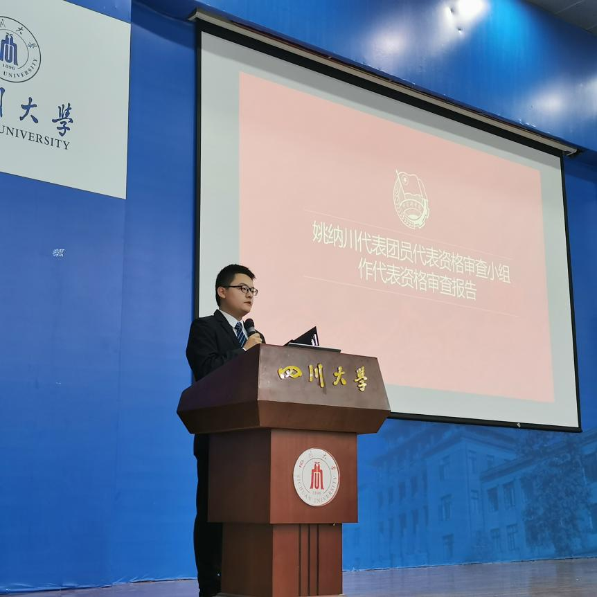 图为公司团委组织部部长姚纳川作代表资格审查报告