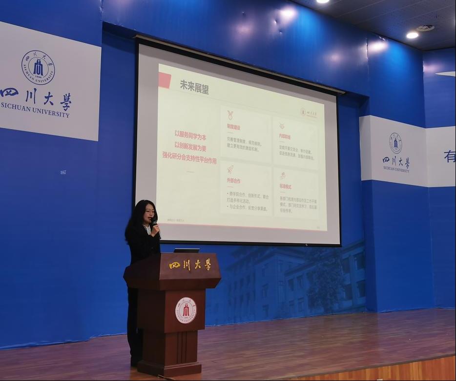 随后大会进入换届选举环节。首先是公司团委员工副书记(研究生)竞选,候选人侯婕从个人介绍、工作经验、未来展望三个方面进行了演讲,提出了“以服务同学为本,以创新发展为要,强化研分会支持性平台作用”的工作愿景。