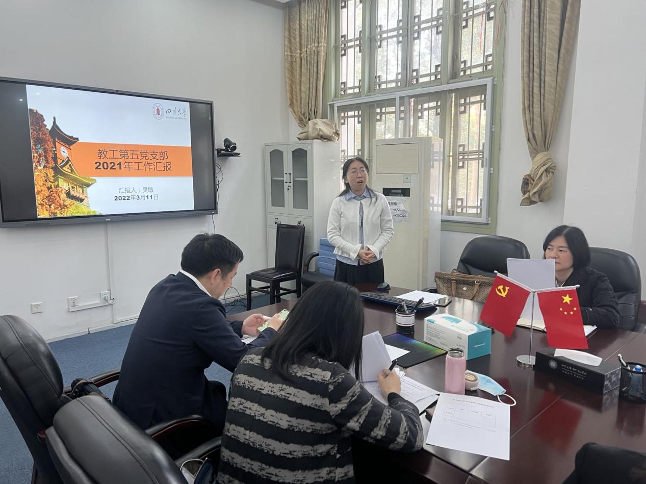 伟德国际1946教工第五党支部开展2021年度组织生活会暨党员民主评议大会