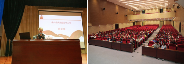 培训班邀请延安干部培训公司姚金果教授作《中共中央在延安十三年》专题讲座,姚教授从“落脚陕北”、“延安岁月”、“转战陕北”三个方面全面回顾了中国共产党落脚延安、转战陕北的历史原因和奋战十三个春秋的艰苦历程,并得出“得民心者得天下”的历史启示,对延安精神的主要内容进行了深刻的解读。