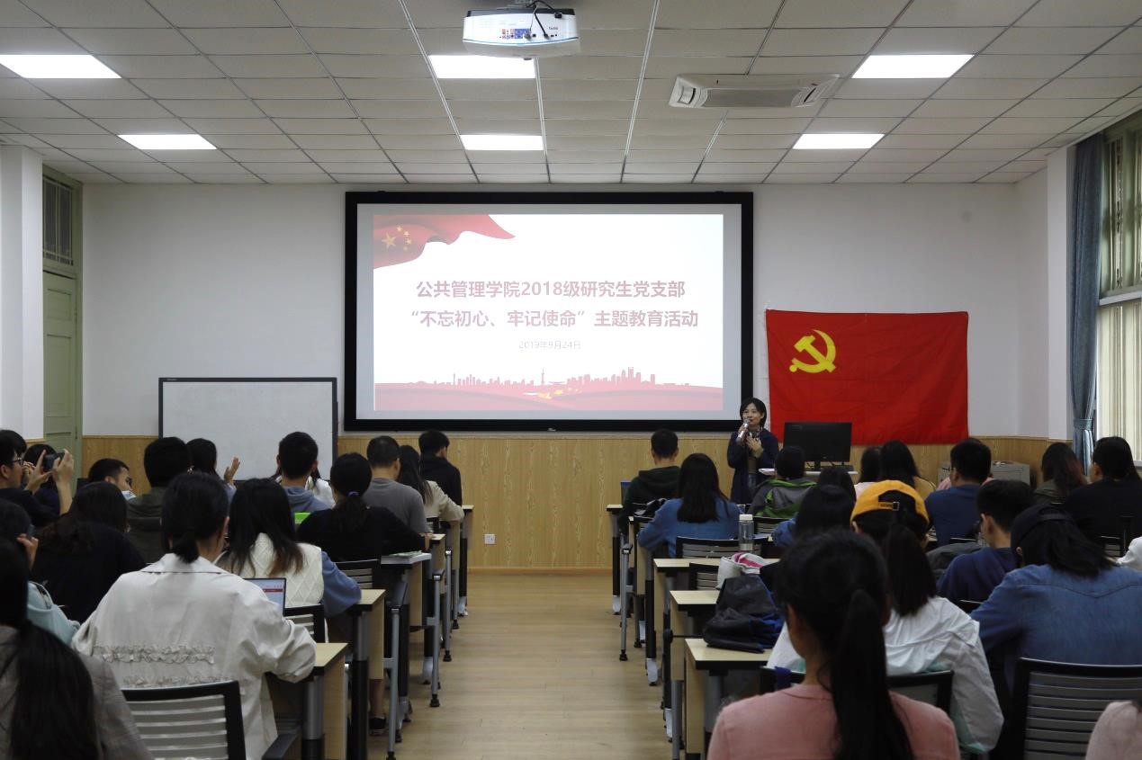 2019年9月24日中午13:00,伟德国际19462018级研究生党支部在公司106教室开展了“不忘初心、牢记使命”主题党日活动。2019年全国青年马克思主义者培养工程高校班学员、全国高校青年党员骨干培训班学员、行政管理专业2017级硕士研究生姚金坤同志为2018级硕士研究生党员进行了“不忘跟党初心,牢记青春使命”的主题讲座分享。本次主题教育活动由2018级研究生第三党支部书记邓雅芯主持,2018级研究生党支部全体党员参加了此次主题党日活动。