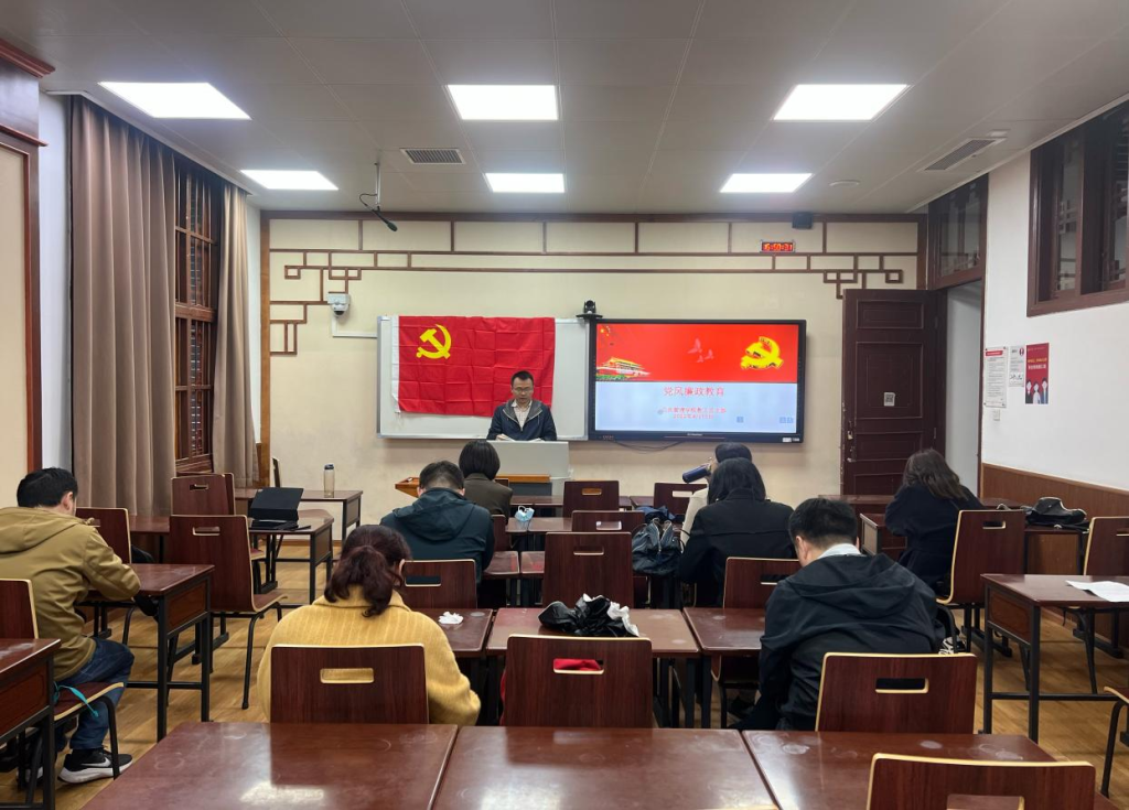 首先,由吴敏老师进行党风廉政教育的宣讲。吴敏老师阐述了党风廉政建设的历史沿革和传承发展,深刻解读了十八大以来反腐斗争的新做法、新成效,并对四川省纪委监委公开曝光4起违法中央规定精神典型问题、成都市纪委监委通报年轻干部腐败问题典型案例、以及10起高校干部职工违纪违法典型案例进行了通报,希望支部党员能引以为戒,做到警钟长鸣。