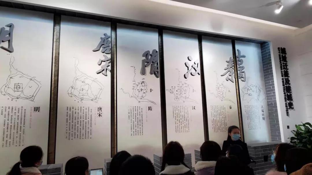 (图为讲解员为同学们讲解成都市的城市迁徙及建城史)
