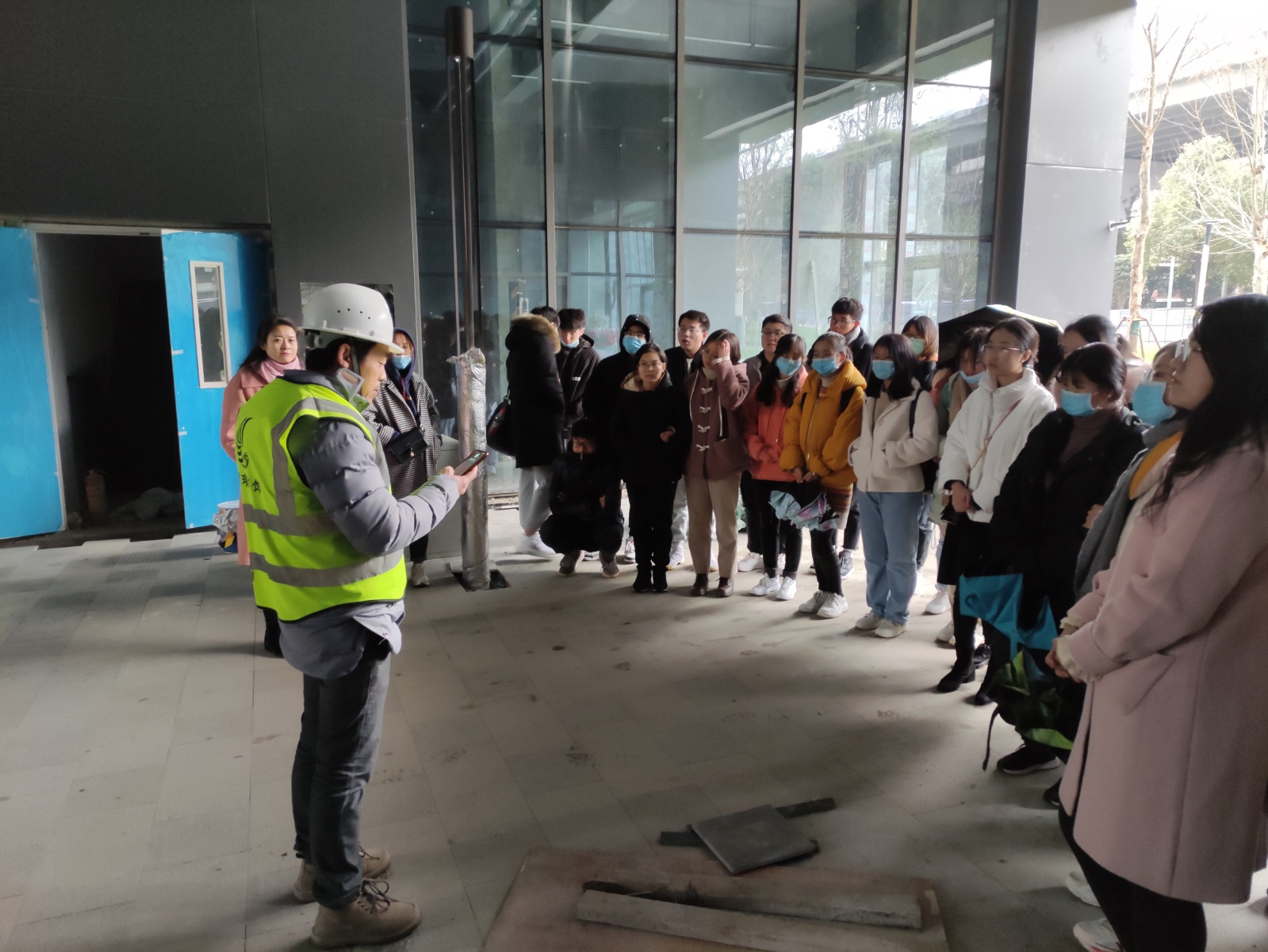 第二部分为项目施工现场实地考察。保利天悦项目施工单位负责人带领全体师生参观了项目在建部分的施工现场,就项目施工的流程、注意事项等进行了详细介绍,并从实践的第一视角解答了同学们的疑惑。