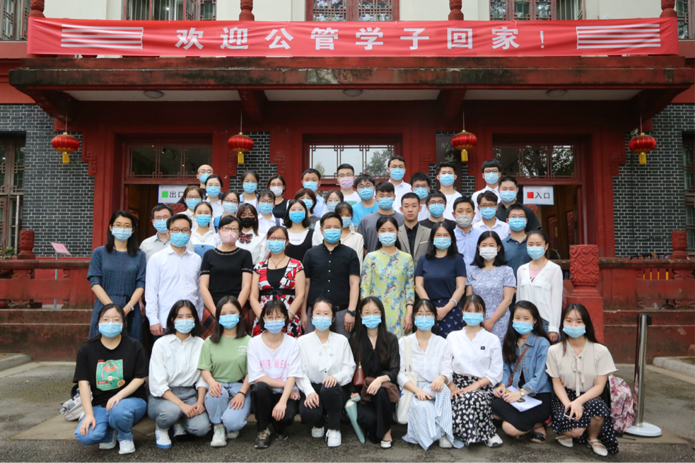 会后,参加此次答辩会的全体师生于公共管理楼前合影留念。