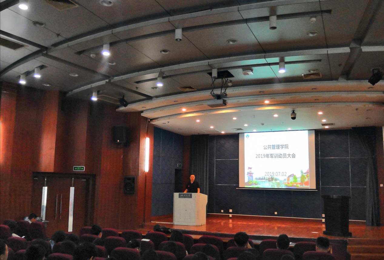 在动员讲话中,杨磊副书记首先从《国防教育法》和《兵役法》的角度,阐述了老员工参加军事训练的必要性和紧迫性;其次,中美贸易摩擦持续加剧、美国和伊朗之间的一触即发、全球恐怖主义依然猖獗、日本右翼势力持续走强等方面,结合案例,告诫即将参训的同学们“当今世界并不太平”;接下来,杨磊副书记以各种军中重器为例,展示了近年来我国军事现代化所取得的优异成绩,用振奋人心的案例,向参训同学做出“一流装备需要一流人才”的论断,鼓励作为“强国一代”的同学们更要居安思危,练就健康体魄,提高国防意识和能力,为实现中华民族伟大复兴的中国梦保驾护航;最后,杨老师对参训员工提出了三点希望,一是希望学员们端正参训态度、尊重军训教官、服从训练安排;二是希望学员们承袭解放军特别能吃苦,特别能战斗的精神,胜利完成军事训练;三是希望同学们通过两周的军事训练,可以强健体魄、磨炼意志、树立“国家兴亡,匹夫有责”的家国情怀。