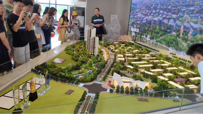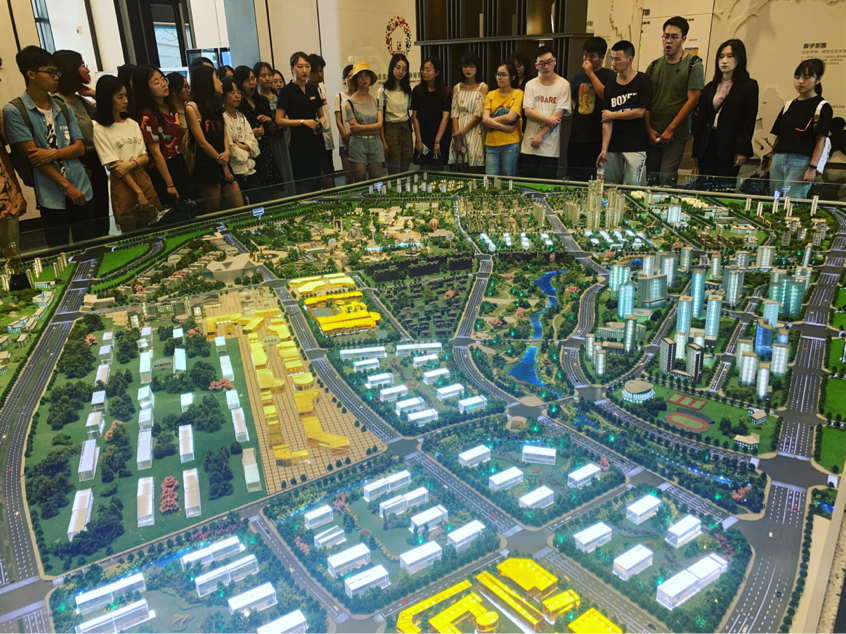 主管们首先介绍了天府新区的整体发展趋势以及项目的沙盘模型帮助同学们了解项目的基本情况,接着又带同学们对样板间进行实地调研。在此过程中,同学们就产品设计的一些问题与主管们进行交流,气氛十分热闹。在参观过程中,同学们不仅学到了新的知识,还将课上学到的东西与实践相结合,更对当今房地产市场有了更深的认识。