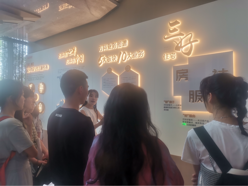 下午13:30,同学们抵达了位于天府新区中心区域的万科公园传奇,校外课程实践活动正式开始。万科销售主管们首先对老师和同学们的到来表示热烈欢迎;紧接着,主管们分批次为同学们讲解了楼盘具体信息。