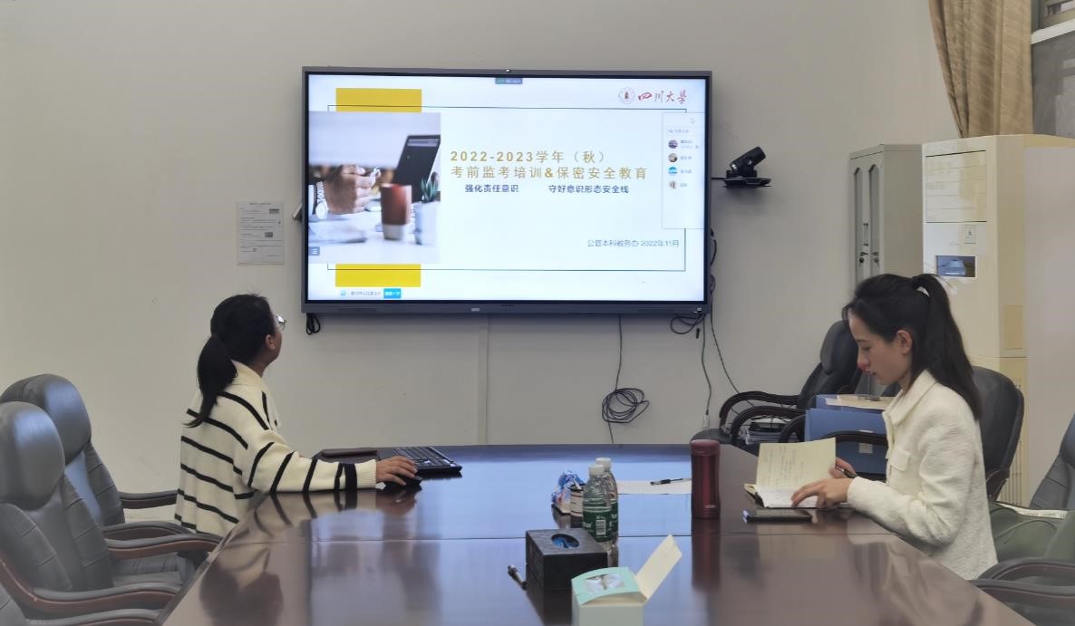 为保证本学期考试工作顺利进行,严肃考风考纪,公司于2022年11月3日上午在望江校区萃文楼220室召开2022-2023学年秋季学期半期考前监考培训会。会议同时以腾讯会议的方式线上进行。