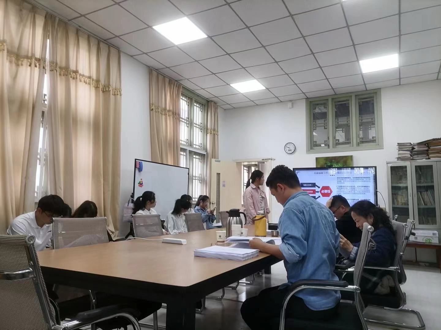 4月29日下午,档案学专业2024届本科毕业论文预答辩顺利举行。本次答辩会分设在220及318两间会议室同时进行,由秘书档案学系王萍、史江、蔡娜、赵跃、王阿陶、杨千6位老师担任评委,全班共计28名同学参加。