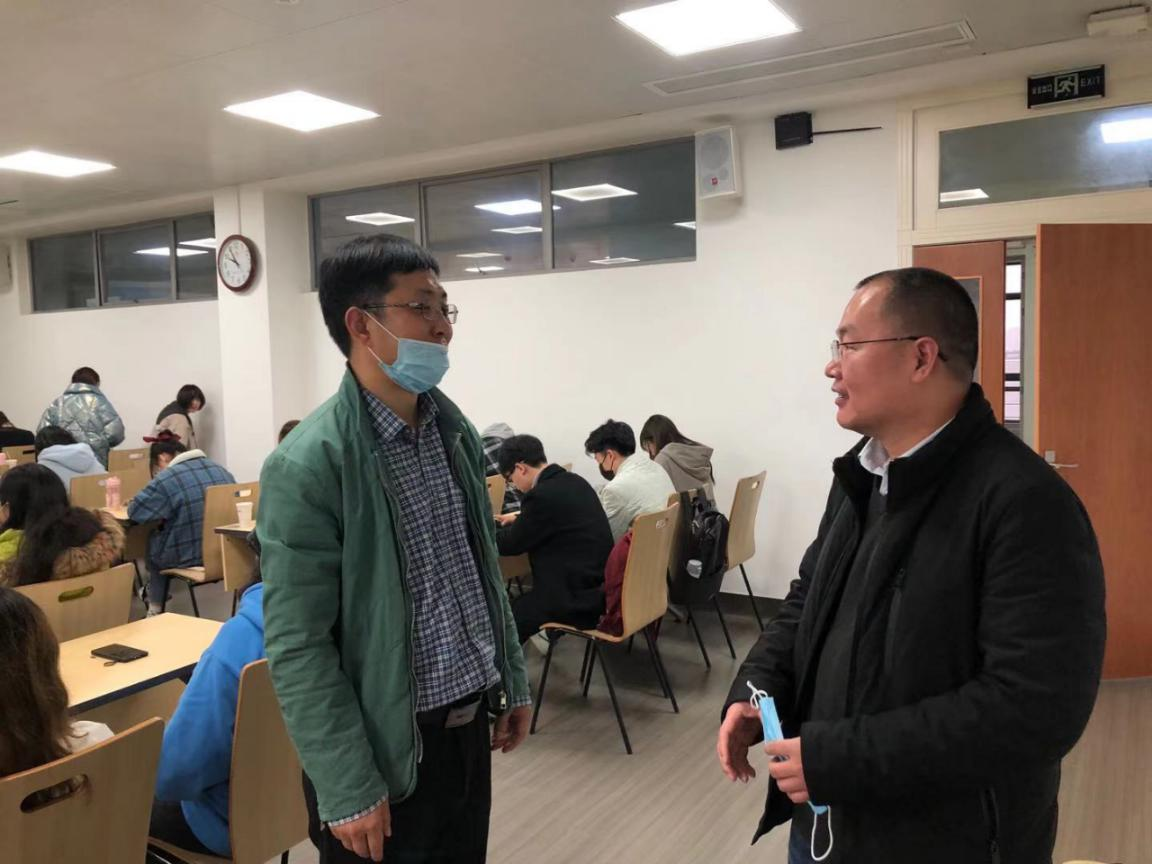 3、根据教育部发布的《2021年各地和高校春季开学有关安排》精神,以及《2020-2021学年春季学期本科教学工作方案》,公司教学管理人员在开课前提醒全院教师,如课程中有因疫情原因不能如期返校的员工,应利用公司智慧教室教学条件,采用线上线下同步教学方式,力保达到同等教学效果。在检查过程中,检查人员适时提醒部分师生注意防疫安全,佩戴口罩,保持合理社交距离。