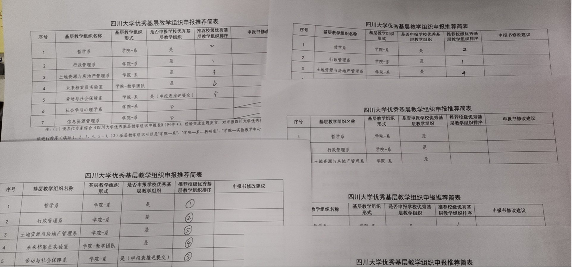 综合审查后,公司本科教学督导组倪道善教授、徐恩元副教授、赵英教授、李晓梅副教授、张爽老师通过排序的方式进行推荐。最终,行政管理系基层教学组织获得3票排序第一、哲学系基层教学组织获得2票排序第一,获得公司推荐参加校级优秀基层教学组织参评资格。