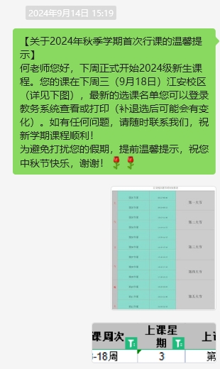 公司教务管理人员提前核查教学任务、课表,并至少提前一天以电话、短信、微信、QQ等方式通知老师们做好教材、授课等教学准备,确保老师们知晓正式上课的时间、地点。提醒上课的教师提前20分钟到达教室,确定教室多媒体等教学设备正常使用,保证教学正常运行。